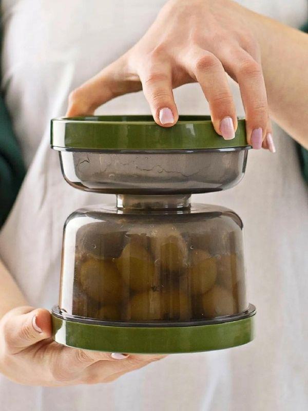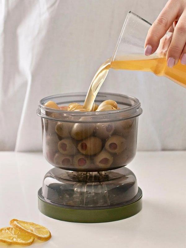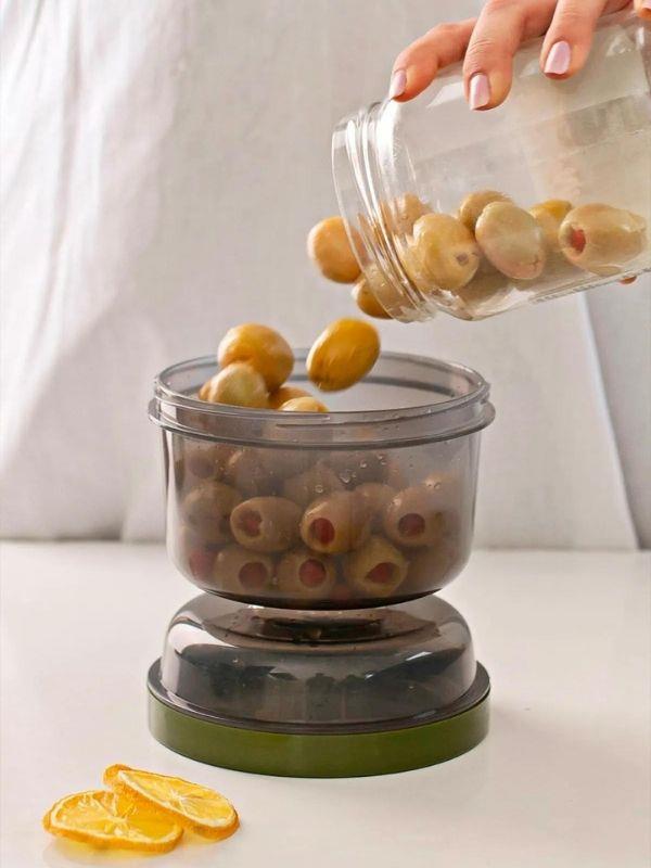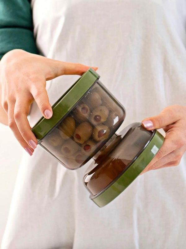 Süzgeci ve sıvı haznesi sayesinde zeytin ve turşu saklamada pratik bir kullanım sağlar.